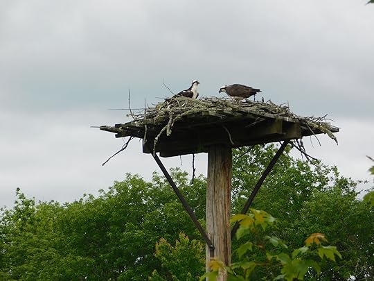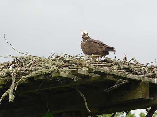 In the Gagetown area, there are lots of osprey nests to see. This time of year there is usually at least one adult, sometimes two, feeding young chicks.