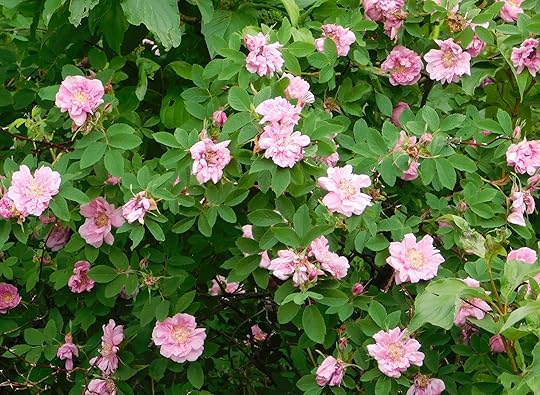 And, this week, there are the roses (Rosa spp.), pink and fragrant. Some with a single whorl of five petals. Some doubled and redoubled.