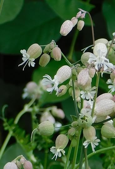 bladder campion or maidenstears (Silene vulgaris), with deeply-notched petals and red-veined inflated calyx …