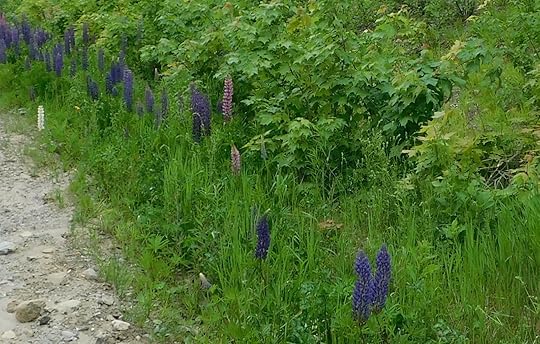 and lupins (Lupinus sp.), crowding the ditches in pink, blue and purple and occasionally white, already setting seed …