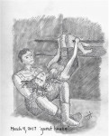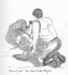 In every book, there are 23 +/- 4 drawings. Some are portraits or repeats of earlier scenes. Today, I did two drawings, both unique to Meniscus: The Knife.