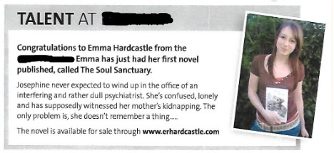I found an old article from my high school's magazine when I published my debut novel, The Soul Sanctuary, in 2010. I thought you might like to see it! Note, the links on this article are out of date and no longer work, and the school have given their permission for me to use the above clip.Enjoy!