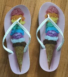 Still, my ice cream patterned flip-flops are a start because they coordinate with my summer yoga pants.