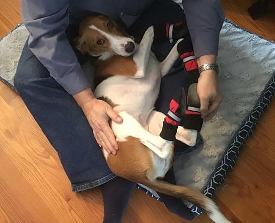 As for Floppy Ears? She had a wonderful time at dog boarding and came home tired enough to sleep for the next two days, freshly bathed, and a bit lighter in weight after channeling her inner greyhound and running almost non-stop around fenced woods with the wind at her back—and through her ears!