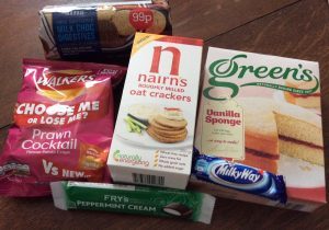 There were the digestive biscuits I’d been craving, right across from packets of Walkers prawn cocktail (shrimp) flavoured crisps (potato chips). One long shelf displayed chocolate bars and other sweet treats and beyond it were my favourite Scottish oat crackers.