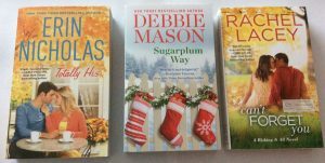 Next up is a trio of books I just received from my publisher, Forever Romance: Sugarplum Way, a new release by my friend Debbie Mason; Totally His by Erin Nicholas; and an advance copy of Can’t Forget You, out next month from Rachel Lacey.