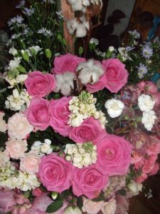 My friends surprised me with a glorious floral arrangement in my favourite colours, incorporating an S in pink roses; some “flowers” made of cotton-wool (Manchester used to be famous for its cotton-mills); and the whole arrangement was in an authentic 1920s mixing bowl, for my 1920s story. You can imagine how overwhelmed I was.