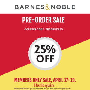Barnes & Noble Premium & Rewards Members: Get 25% off all pre-orders from April 17 through 19, 2024 including eBooks.