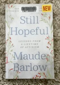 At my local library, front and centre on the “new” non-fiction shelf was Still Hopeful: Lessons from a Lifetime of Activism by Canadian author Maude Barlow.
