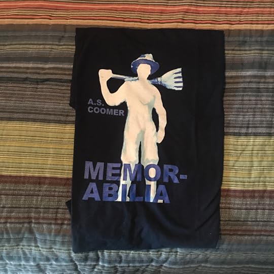 A.S. Coomer’s fifth novel, Memorabilia, has developed its own memorabilia: a boxful of T-shirts.