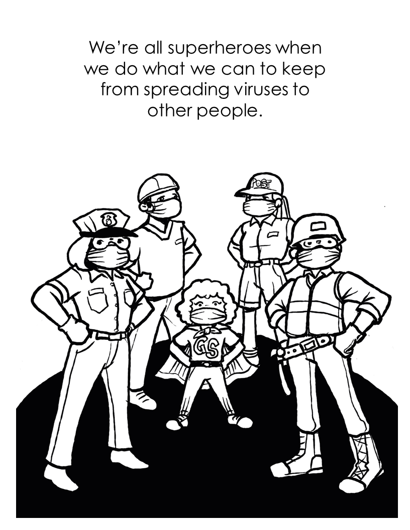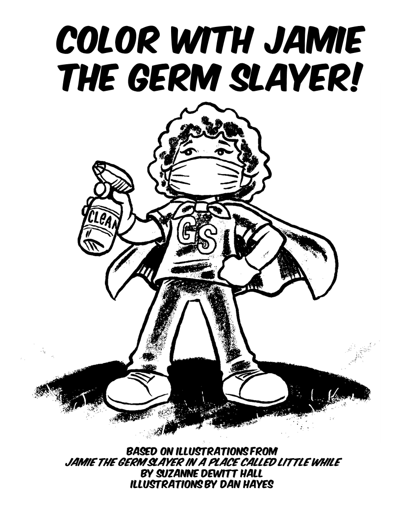 I created the coloring and activity sheets below for people who need resources to keep kids busy during isolation. They are based on Dan Hayes' wonderful illustrations which are featured in my book titled Jamie the Germ Slayer. Hope they are helpful!