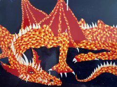 Fox: I knew that would happen! It’s the only one where the colours ran, and you can’t see the face very well. But then I did the one of her snake-eating-its-tail, and the sunshine anger, and she loved those, so I think she’s on board now. She has quite a few more monsters to share.