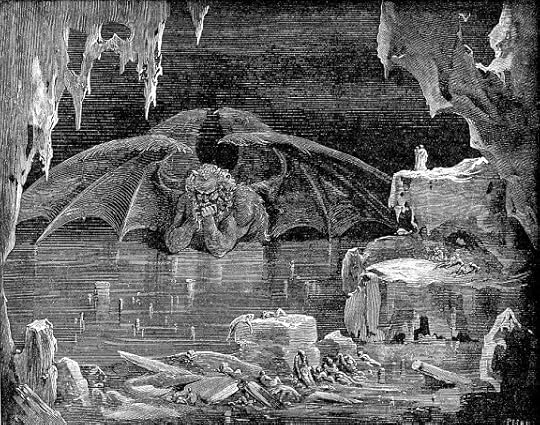 Compare this to the description of the Ninth Circle of Hell in Dante’s Inferno. At the center of the Ninth Circle is Satan himself frozen up to his breast in ice. The beating of Satan’s wings creates the ice which ensnares him. The cold wind he creates is felt throughout the other circles of hell, as well. In this section of Hell, sinners are frozen alongside Satan in a great lake of ice.