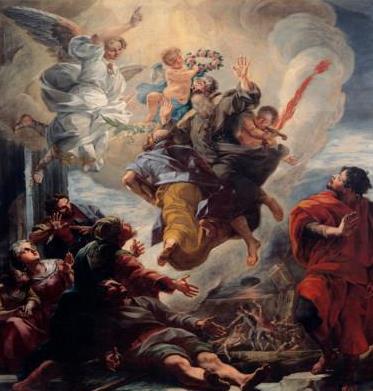 Elijah being assumed into heaven riding the fiery chariotThis last phrase also points to another assumption, namely, that of Enoch. Enoch's assumption occurs in Genesis 5, where the descendants of Adam are described: