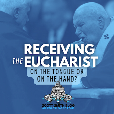 But wait, you might say, my tongue isn't consecrated! What's the difference between my hand or tongue if neither is consecrated? This is why the Rite of Baptism used to include a sprinkling of blessed salt on the baby's tongue -- to consecrate the child's tongue in preparation for the day the child's tongue would receive the Eucharist.