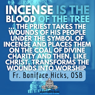 Here is Fr. Boniface Hicks, OSB describing this connection with incense being the "blood of the tree" with Matt Fradd in Pints With Aquinas: