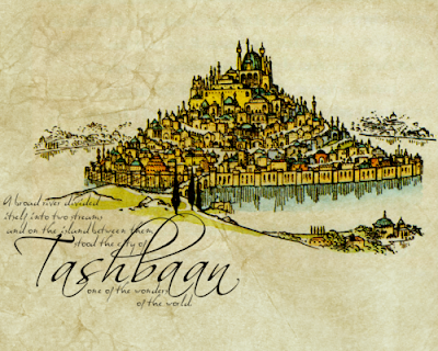 "A broad river divided itself into two streams and on the island between them stood the city of Tashbaan, one of the wonders of the world." - Chapter 4, A Horse and His BoyThe Woman at the Well of Narnia, The Silver Chair