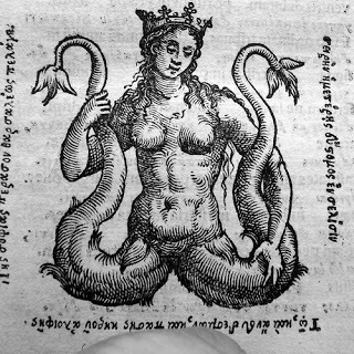 Según el Diccionario de símbolos, la sirena de dos colas es Melusina o Melisande, una sirena con serpientes en lugar de piernas, que es además un elemento simbólico dentro de la alquimia.