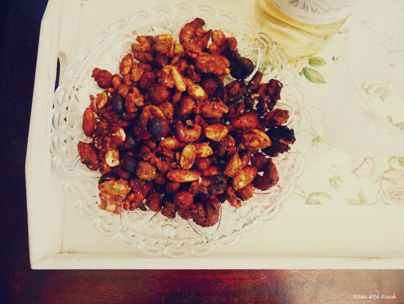 If we have a business that pretty much depends on exposure and getting our name out there, I mean, this makes sense. It's what ends up happening. So once in a while I feel like I need to pull back, and really get to myself, tend after myself away from this constant pressure of being ever present and available to others so they will be to me. I mean, I'd love people to flock to my blog or my insta because they genuinely like my work, not because they want me to flock back to their feeds. But that's not gonna happen, so I'm taking a break with roast nuts and chilled wine - it's hot out there! You'll need:250 gr mixed nuts1 egg white + dash of water1 tsp salt1 tbsp dark muscovado sugarcayenne pepperturmericpaprikaground cumindried chivesPre-heat the oven at 180º. On a bowl, mix the nuts with the spices and the sugar. Whisk the egg white and add the water, whisk again. Pour over the mixed nuts, stir together so you coat the all. Line a baking tray with baking parchement, pour the nuts into it and spread them out. Roast until they're caramalized and golden in colour. Allow to cool, then break up the nuts, place them in a clean bowl and add the salt. Mix around and served with a chilled beer over good conversation. Such a treat!