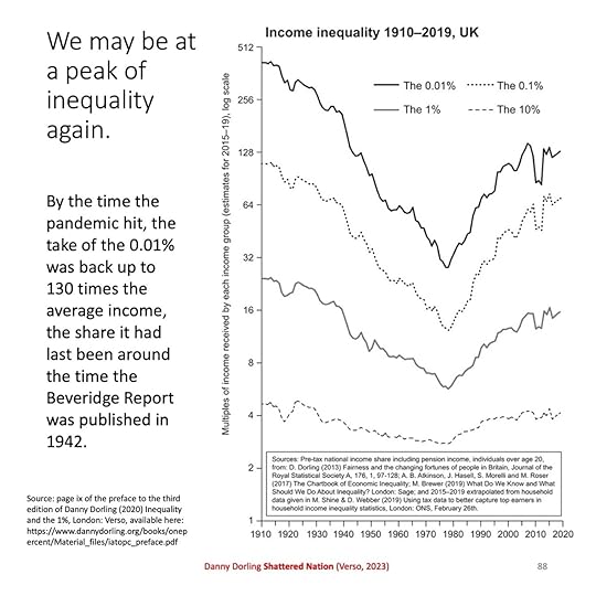 The rapid increase in income polarisation that occurred across the UK from the 1970s onwards meant that a job in the BBC became an ever more coveted aspiration for those families increasingly desperate that their offspring should stay in the top 10%. Joan Bakewell could appear on Late Night Line-up in the 1960s despite being the granddaughter of factory workers. In contrast, most of the intellectuals on screen today grew up in ‘the 10%’. This was a group that by the end of the 1980s came to take and spend 40% of all income each year in the UK. To move to London and live in London today, to work at the BBC now, usually requires a little ‘family money’.