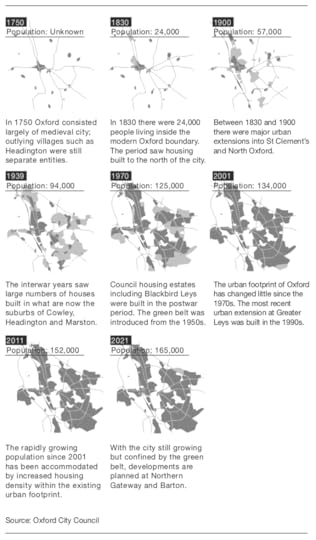An older member of staff tells you of a problem with their children’s primary school. The staff keep on changing every year, often during the school year, and “they are all so young and inexperienced”, she says. “The last head teacher they appointed was incompetent and has already resigned. It is as if they can’t find someone who wants to do that job for any length of time who can also live in or around Oxford.” You tell them you once saw a series of maps of how Oxford expanded over time. The light grey areas on the map were what had been newly built. The maps showed that the city abruptly stopped expanding after the 1970s. “The reason” you say, to show (in the Oxford Way), just how very clever you are, “was not because of the green belt, but because the car factory was no longer taking on any new staff”.