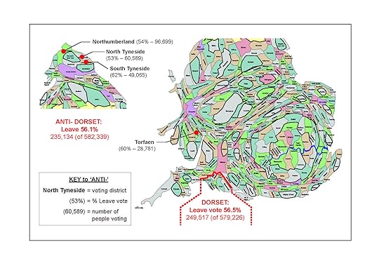 Finally, when you are wondering what is happening over the course of the next few weeks and who brought this all about, consider the map shown in Figure 3. I have produced 28 such maps, one for every county in all of the South of England. In each and every case the electorate of the county in the South is lower than the electorate of a set of comparator areas (in this case the comparator is labelled ‘Anti-Dorset’). In each and every single case the Southern English county provided more Leave voters. In no case have I had to use the same area twice, and I have included every single area that voted in all of the UK in constructing these 28 comparisons. Figure 3 shows just one of the 28 maps. It shows that Dorset was more important than impoverished Torfaen in Wales, North and South Tyneside and the whole of Northumberland in getting the UK into the situation it finds itself today. If we don’t even understand this, we are going to find so much of what will happen next impossible to understand.