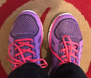 I've got new trainers. They match my hair. Kind of-I don't have pink laces in my hair.