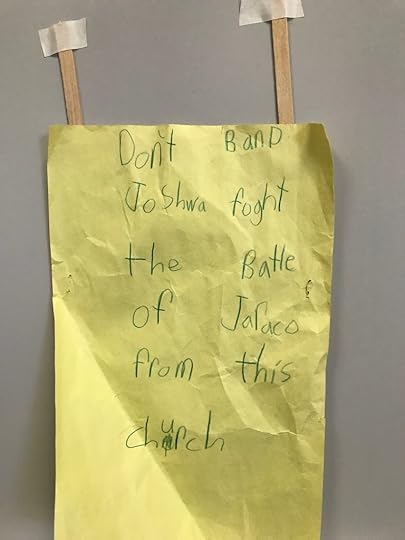 Most of the children love to sing “Joshua fought the battle of Jericho” (which, technically is, “Joshua fit the battle of Jericho,” but that would involve too much explaining). They line up and pretend to be the wall of Jericho while the leader sings the song and then they decide whether or not to fall at the end–falling is often dramatic, delayed, or acrobatic.