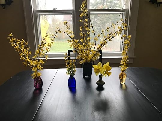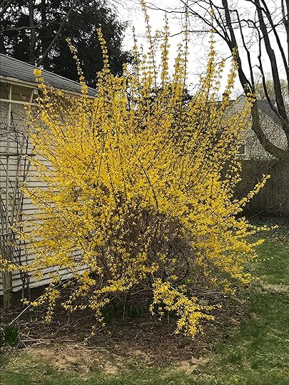 Notice beauty around me. The weather in Michigan the last two weeks has been lousy, chilly and rainy/snowy. I am not here for it. But it did contribute to how long my forsythia has been in full bloom.