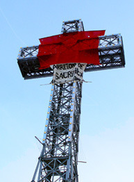 À vrai dire, j'ignorais l'existence de cette croix et songeais davantage à celle du Mont-Royal, comme en 2005 (pas cette nuit! Il vente à écorner les boeufs!)