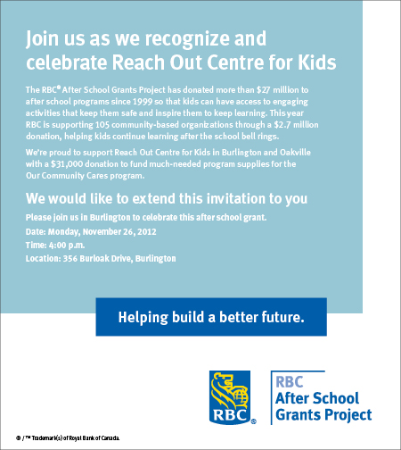 Awesome day yesterday helping to kick off the The RBC After School Grants Project in Burlington! Money was handed out. I read. The kids' laughed, and then took home books donated by Scholastic Canada. Here's the short info on the project - more later when I have a chance to pull it together!