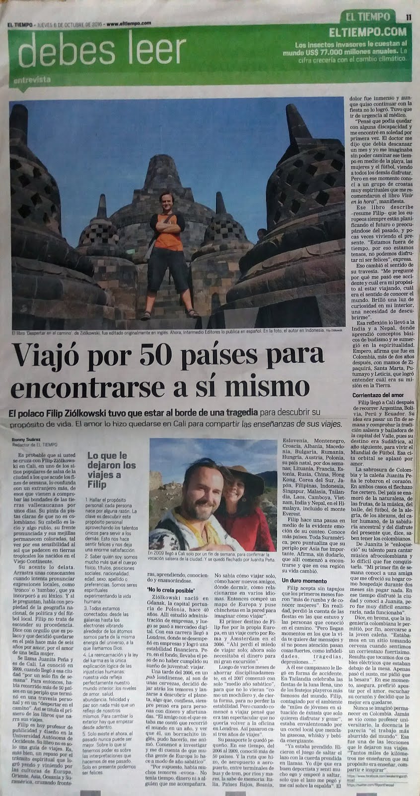 "Despertar en el Camino" revela experiencias de viajar por el mundo. https://t.co/Xf96vrBQW6— Filip Ziolkowski (@filipontheroad) October 31, 2016