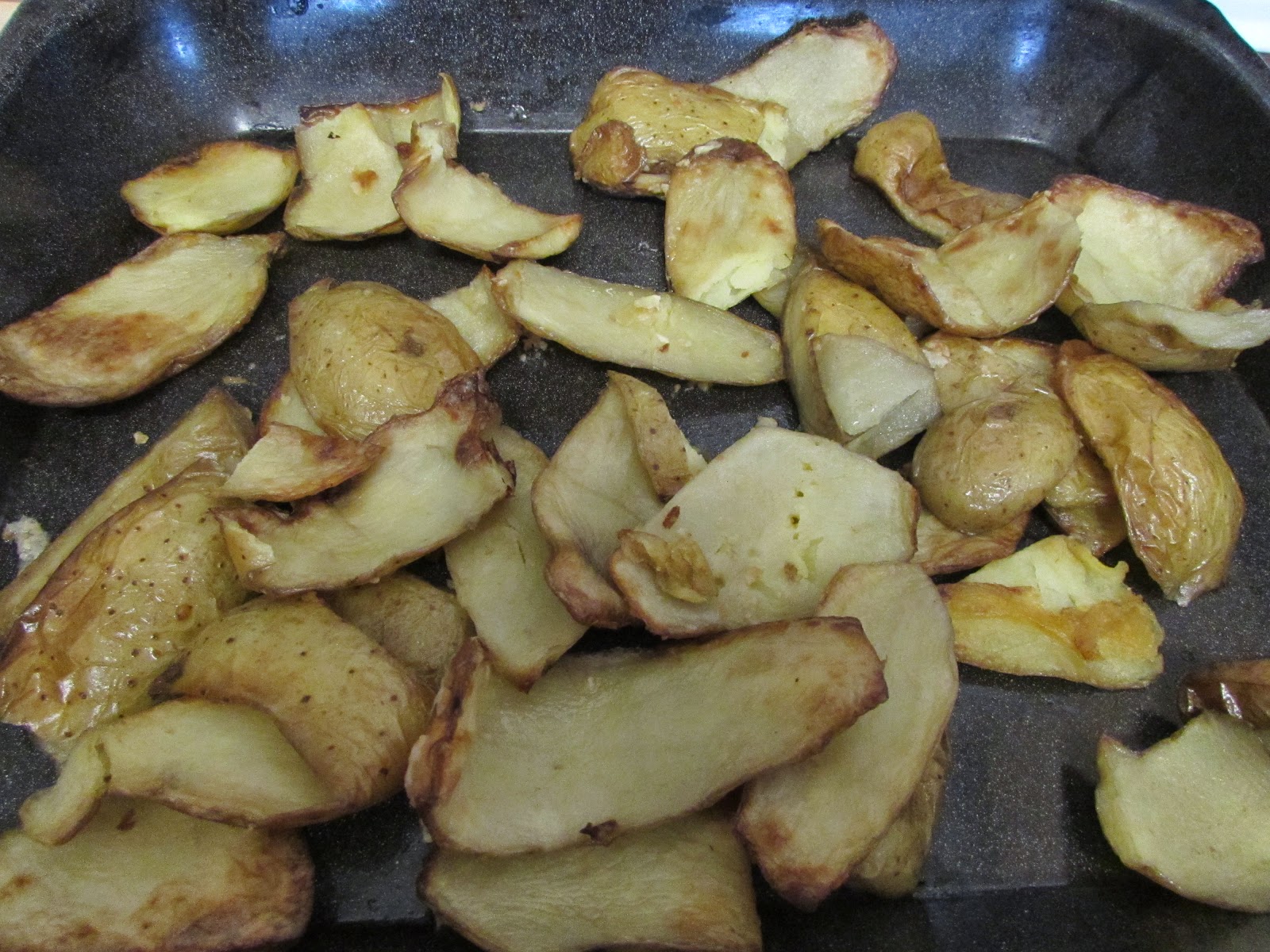 Meanwhile, I got some of my part cooked potato skins from the freezer and heated them for the same time. If you want to know more about my potato skins idea, CLICK HERE