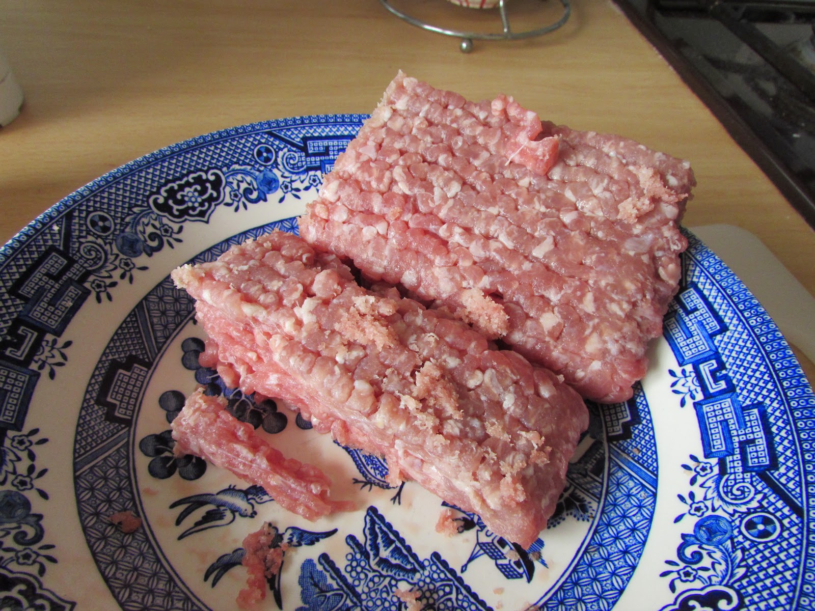 A while ago, I spotted some Pork Mince reduced as it was nearly out of date. I split it in two (there was 500g) and froze it, now I’m making burgers with half of it.