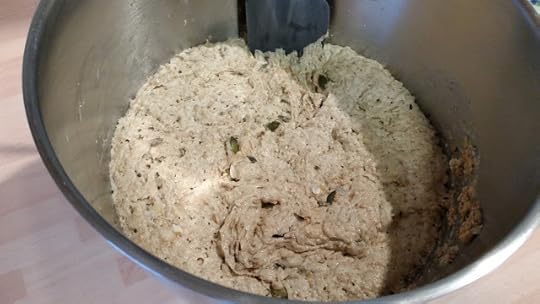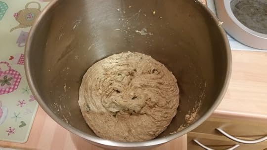 I put 500g of chopped beetroot in 1000g of flour, 635g water, 40g Olive Oil and 20g each of yeast and salt. The amount of water has been reduced to allow for the liquid in the package. It’s beetroot juice, don’t waste it.