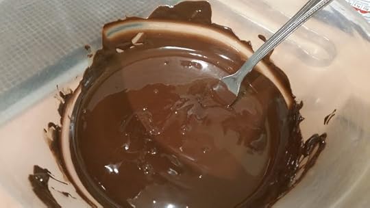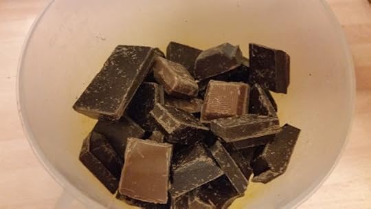 After this time I melted 300g Dark Cooking Chocolate in the microwave (20-second bursts with a stir each time so it doesn’t burn)