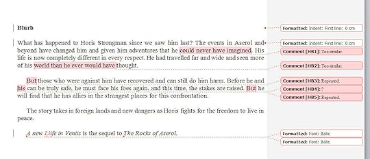 Just as an example, here’re the editor’s comments on the proposed blurb, as you can see it’s only a few lines of text but I thought that my version was pretty good at summing up the stories themes without giving too much away.
