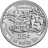 The coin itself is pretty good, melding Ms. Manaka'ole with the land itself. She looks a little grim and stoic, though other photos I've found seems to be warmer. The inscription at the bottom translates as "Granting the Wisdom", which is a pretty fair estimation of her legacy. I think her name is going to get lost in her hair/landscape, but moving the various text around the coin is a good call. I don't remember the "cents" sign showing up since coins a hundred years ago, but it works here.
