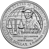 If you're going to do a series on important American women, of COURSE you're going to do Anna Eleanor Roosevelt. She is the most notable and effective activist First Lady since Dolley Madison evacuated the White House, and she set the bar for all presidential spouses since then. Her work during the war is commendable and is exceeded only by her later work with UN and the Universal Declaration of Human Rights. She ALREADY has a coin, though it is one of the Presidential Spouses $10 series that never saw circulation, and she, apart from all the other first ladies, has her own statue in her husband's memorial in Washington DC.