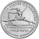 The coin, though, does not do her justice. The pose is supposed to represent a grand jete (a mid-air leg splitting leap for us muggles) but comes off as static. Her headpiece (I am guessing here) comes from Stravinsky's The Firebird, but looks incidental and does not contribute to the sense of motion at all. Good points for framing her in the spotlight, and for including her Osage name ("Two Standards", or "Two Worlds") on the coin as well. It is perfectly serviceable, but I think it is missing the sense of motion that a ballerina demands.