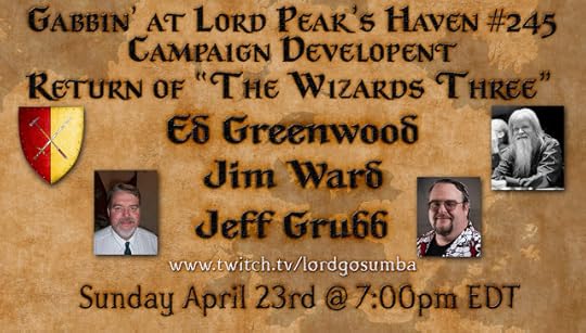 Next in the queue, Jim Ward, Ed Greenwood, and I are returning as "The Wizards Three", where we talk about the Realms, Greyhawk, and Dragonlance. Be there or be square!