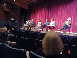 This was reader's theater, which meant we were not doing blocking, sets, action, or anything. Just sitting in chairs. The Readers, a group of students from Shorecrest High School and some women of a certain age who were friends of the other playwrights were seated in front of the curtain. OK, I read for one of the plays, which needed an older man of a certain age for the reading.