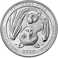 However, the cool thing about American Samoa is on the coin - it is the home of two varieties of fruit bat, and the Treasury shows Mother and Child fruit bats. The carving itself of one image, is superior to the mixed bag you see in some earlier quarters, and is really well-done.