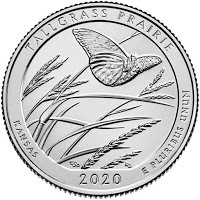 I like this one. It is relatively simple presentation for a site that specifically doesn't have purple mountains majesty, but rather celebrates a non-fruited plain. The grasses are native, and so is the butterfly (a Regal Fritillery, for those keeping score). Yeah, I could make a Mothra joke, but this is a nice moment of peace captured on a coin. Good work