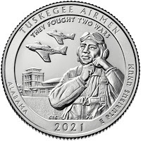 The coin itself is balanced for everything that it carries - Pilot in front, two P-51 Mustangs in flight overhead, the control tower of Morton Field, where they trained, in the background. A lot of elements in this coin, but unlike a few others, it pulls together into a cohesive image. It is a fitting wrap-up, both for subject and design, for the series.