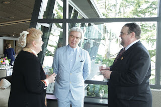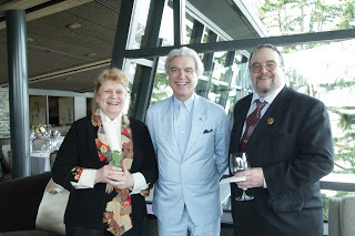 Bride and I.And, delighted (that was David Byrne!), I moved off and talked with other guests. By the time Kate returned I was chatting with Darragh Kennan, an actor I had seen at the Rep who was serving as a rep for the Rep that evening. Darragh had been Sherlock Holmes in two productions at the Rep, and we chatter about our long-standing season tickets at the Rep, favorite plays, theater in Milwaukee and elsewhere. Servers circulated with wine, and later hors d'oeuvres. When Kate could not have the steak tartar because of her allergies (a mayonnaise aoli), they retreated and reappeared a few minutes later with a sample that was egg-free. They're good that way.
