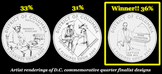 Still, it is nice quarter, a mirror of Mr. Ellington's, Mr. Douglass at his writing desk, the Haney Place in the background, which was finally finished by Alf and Ralph. A perfectly nice coin, but I have to call shenanigans on the selection process. Alternately, I could credit them with saving money on not commissioning a new piece but instead using pick-up art. Nah, I will go with shenanigans.