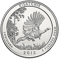 Kiatchie (the name is derived from the Kichie tribe that once lived in the neighborhood) is a swath of upland forest in the northern half of the state,, divided into five big chunks over seven parishes. Like the Homestead Monument, there is not a lot of define it on the back of a quarter. Unlike the Homestead Monument, there isn't as much as an idea here to crystallize around, either. So in the end, they chose a local inhabitant. The turkey. Yes, that is what that's supposed to be.