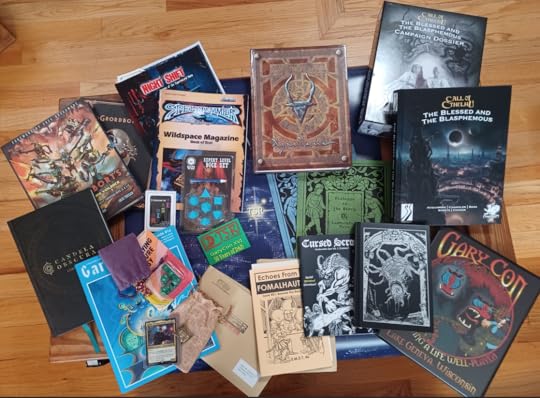 A few things on this list showed up since last time, but with the convention a whole slew of new products came in. Part of this is because I was a guest of the convention, and as such had a swag bag of stuff (thanks, folks!). And part of it is because there are good small publishers that I only find at conventions like Gary Con.