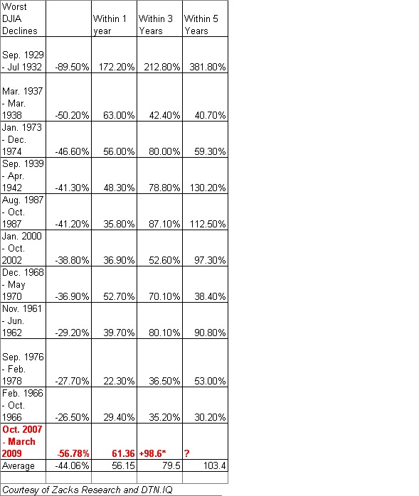 History suggests that this stock market rally could last another two years. Zacks Research provides data on previous DJIA increases for the five years following a crash. This rally could run from 2009 to 2014.